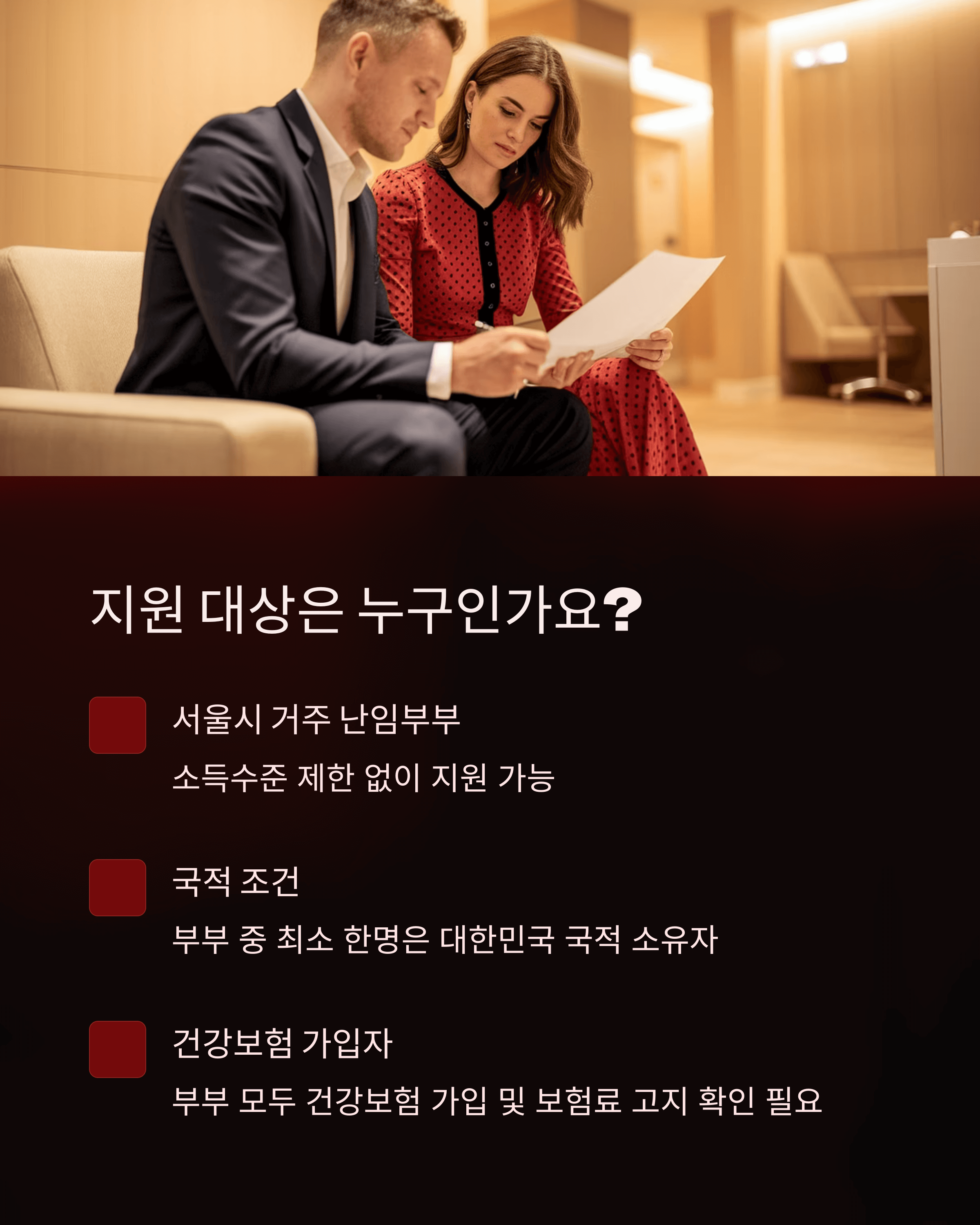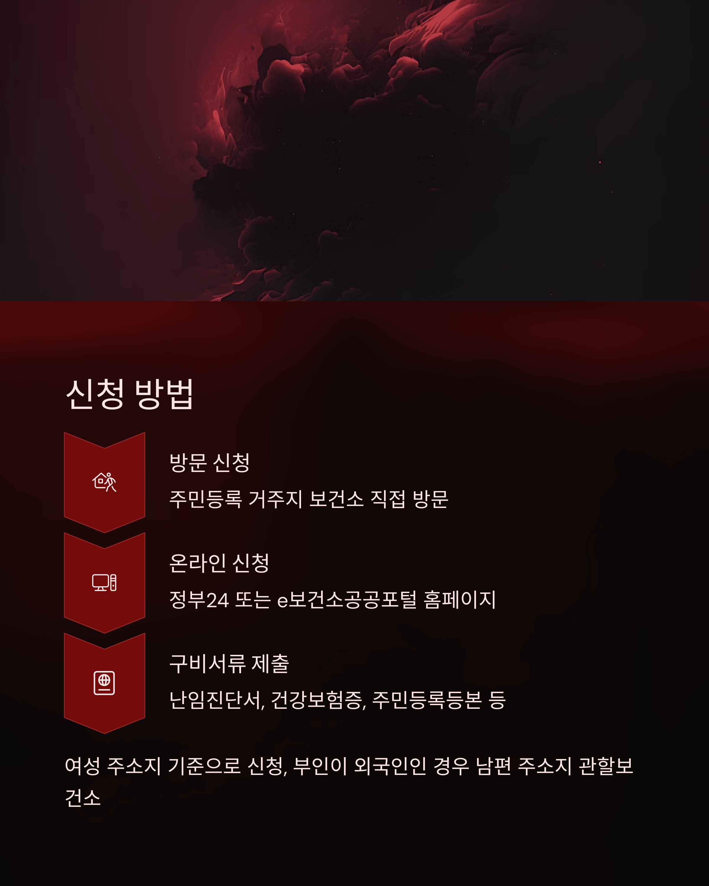 여성의 연령은 만 44세 이하로 제한되며, 사실혼 부부의 경우 최초 신청 시 보건소 방문이 필수입니다. 소득 기준은 기준 중위소득 180% 이하로 적용되며, 정확한 소득 기준은 보건소나 서울시 임신·출산 정보센터에서 확인하실 수 있습니다.
