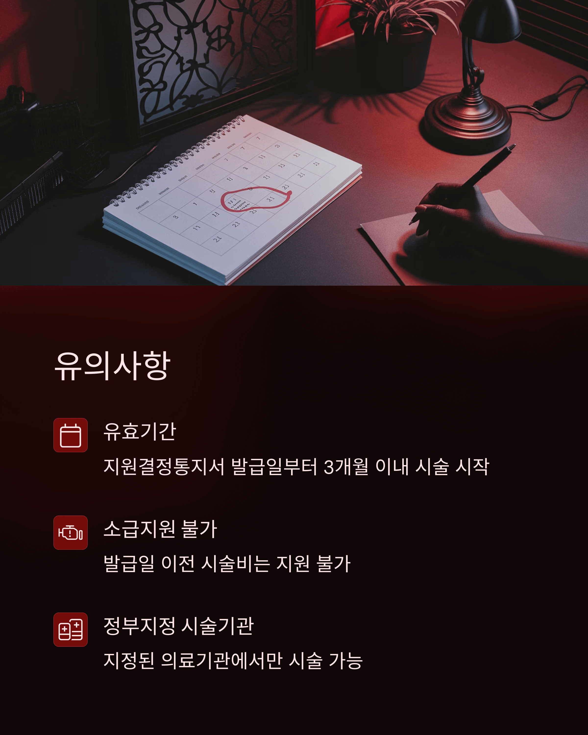 신청 후 지원결정통지서를 받은 후에는 해당 의료기관에 제출하여 시술을 진행할 수 있습니다. 시술이 완료되면 의료기관에서 보건소에 시술비를 청구하고, 보건소에서 지원금을 지급하는 방식으로 진행됩니다.
