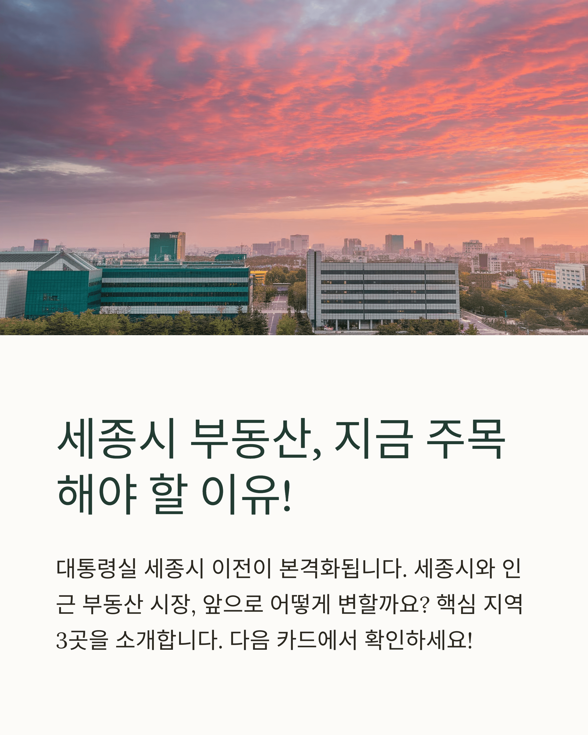 2022년부터 논의된 대통령실의 세종시 이전이 본격적으로 진행되면서, 이 지역은 새로운 정치·행정 중심지로 자리 잡을 것입니다. 이에 따라 세종시와 그 주변 지역의 부동산 시장에도 큰 변동이 예상됩니다. 그 중에서도 가장 큰 영향을 받을 3대 지역을 소개합니다.