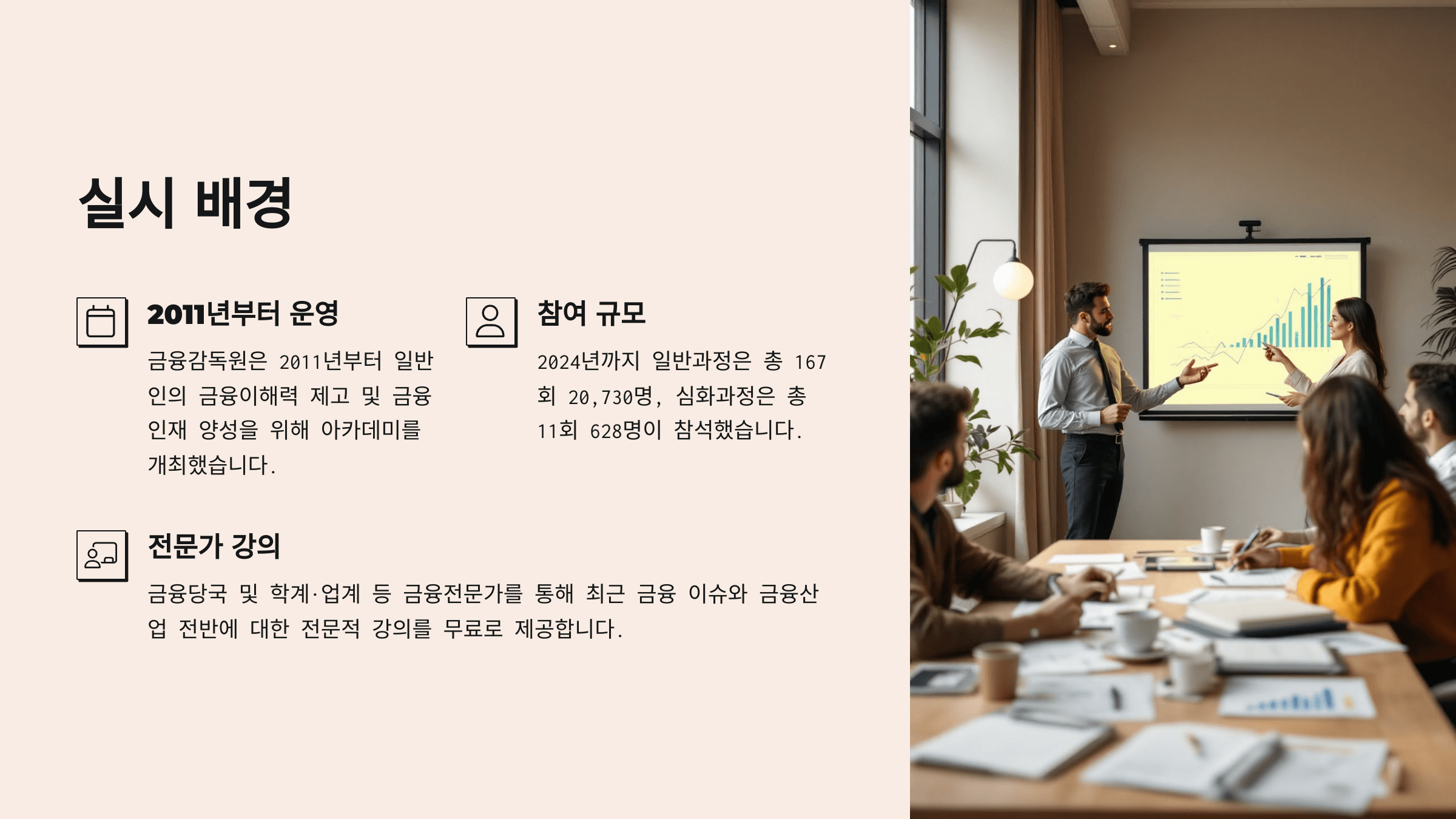 *. 참가신청은 ’25. 4. 7.(월) 오전 10시부터 금융감독원 e-금융교육센터 홈페이지(http://www.fss.or.kr/edu)에서 가능
