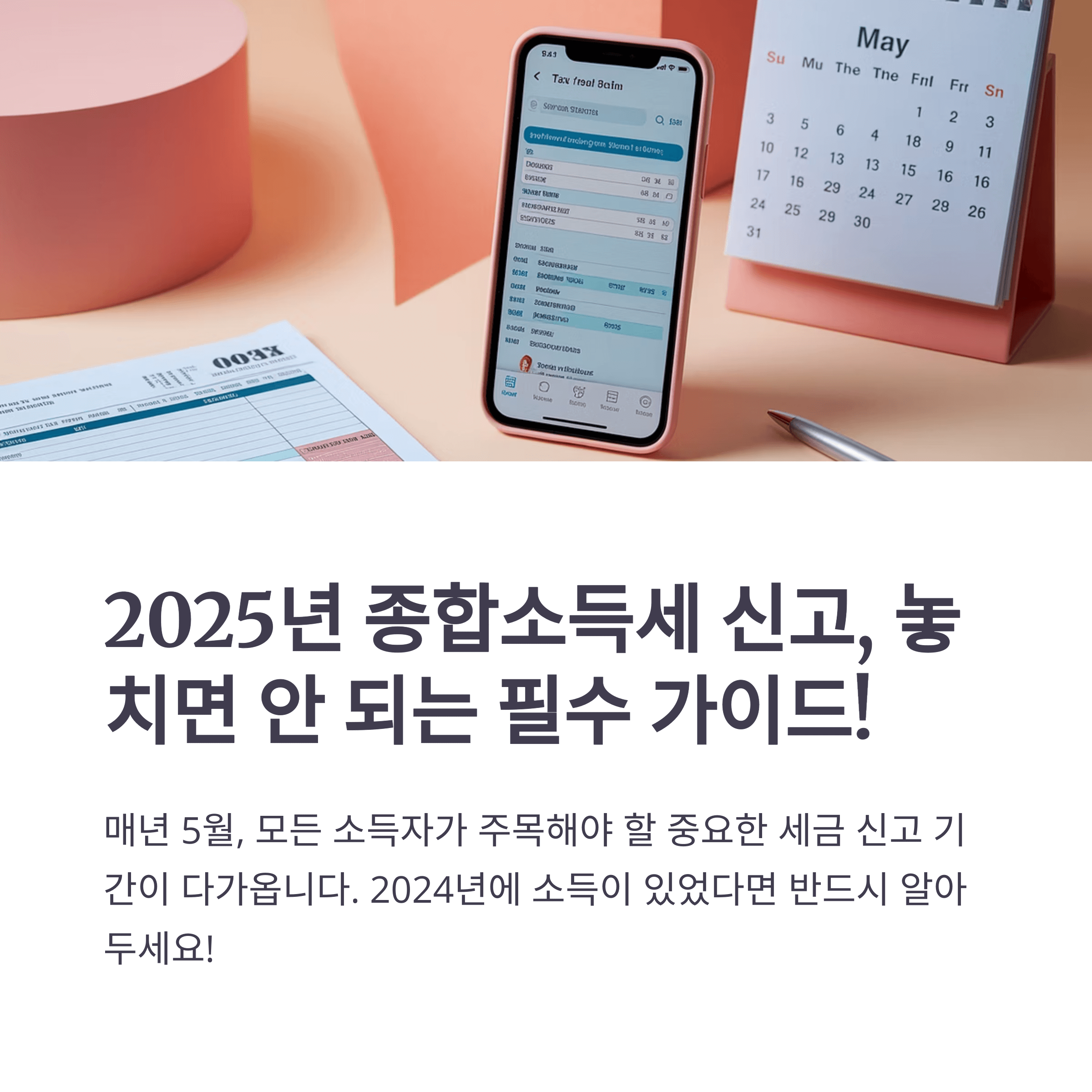 종합소득세 신고는 매년 5월에 이루어지는 중요한 세금 신고 절차입니다. 2025년 종합소득세 신고에 관한 주요 내용과 방법을 안내해 드리겠습니다.
