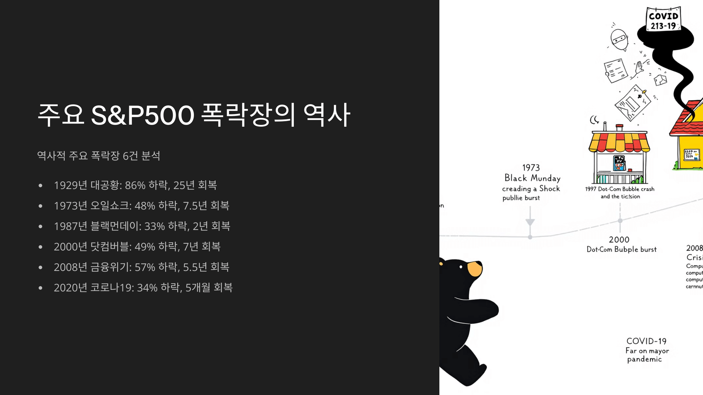 - 40% 이상 하락 후 평균 회복 기간: 약 7년